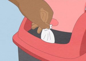 اپلیکاتور را با انگشت شست و وسط بیرون بیاورید. شما نمی خواهید این را رها کنید! باید نسبتاً به راحتی خارج شود و شما با یک نخ آویزان از واژن خود باقی خواهید ماند. نخ را نکشید – ممکن است تامپون را از جای خود خارج کنید. اپلیکاتور را در دستمال توالت بپیچید و در سطل زباله بیندازید.